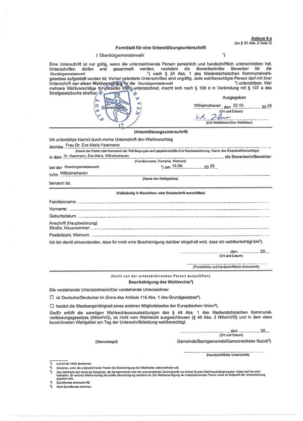 So helfen Sie mir auf dem Weg, Wilhelmshaven eine starke Stimme zu geben.